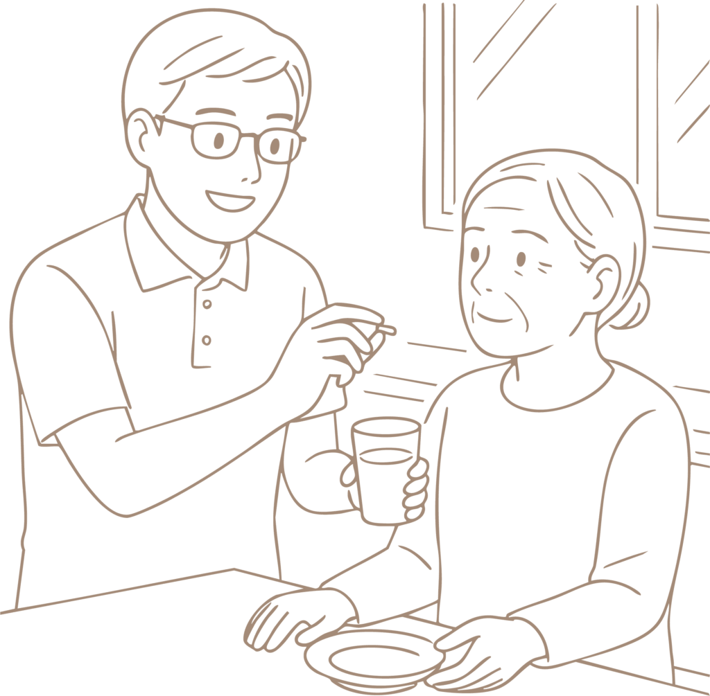 巡回、おやつ提供、排泄介助
